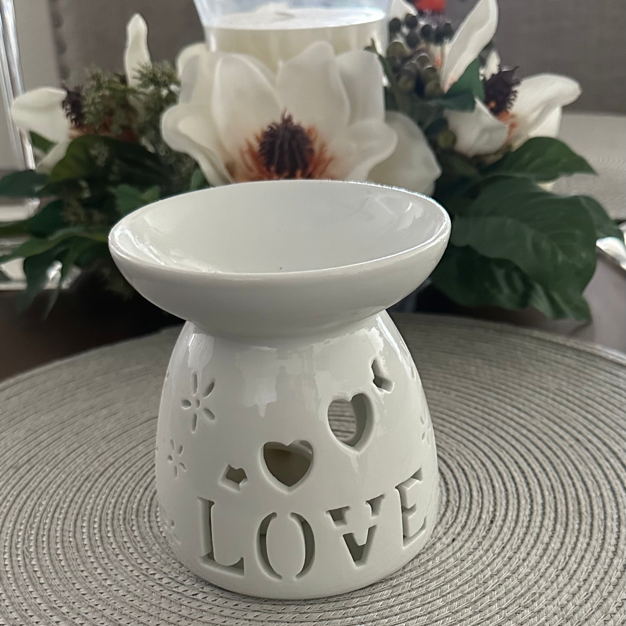 🕯️ Heart Love Ceramic Fragrance Warmer – Elegant Oil Burner for Wax Melts & Essential Oils