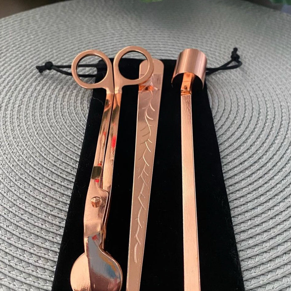 Candle Care Kit – Wick Trimmer, Snuffer & Wick Dipper Set | Luxury Candle Accessories with Velvet Storage Bag for Candle Lovers