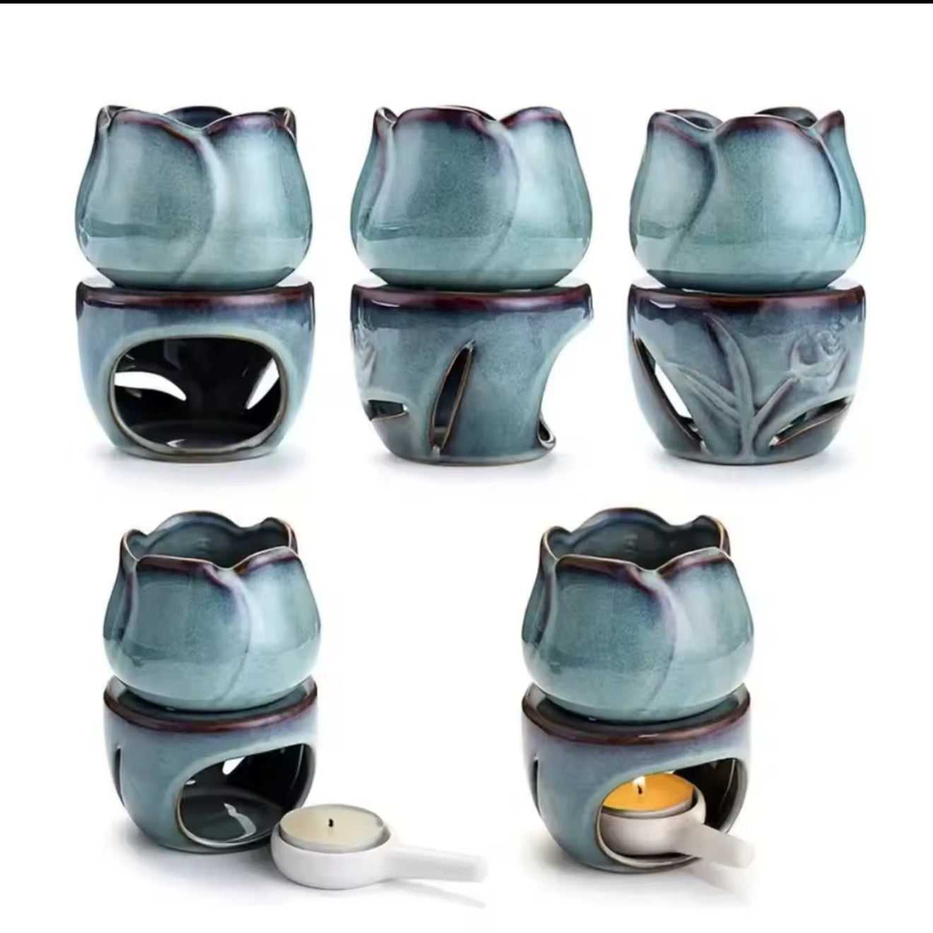 3-Piece Tulip Shaped Ceramic Oil Burner & Warmer – Potpourri, Wax Tart & Essential Oil Diffuser